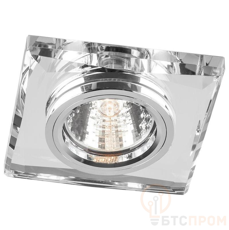Светильник потолочный встраиваемый (ИВО) FERON DL8150-2/8150-2, под лампу MR16 G5.3, прозрачный хром, квадрат, 90*90*23 мм, монтажный диаметр 60мм, корпус стекло, неповоротный
