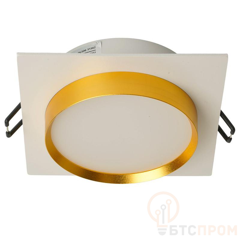 Светильник потолочный встраиваемый (ФВО) FERON DL506, под лампу GX53 GX53, белый+золото, квадрат, 110*110*40 мм, монтажный диаметр 90мм, корпус металл+акрил, неповоротный