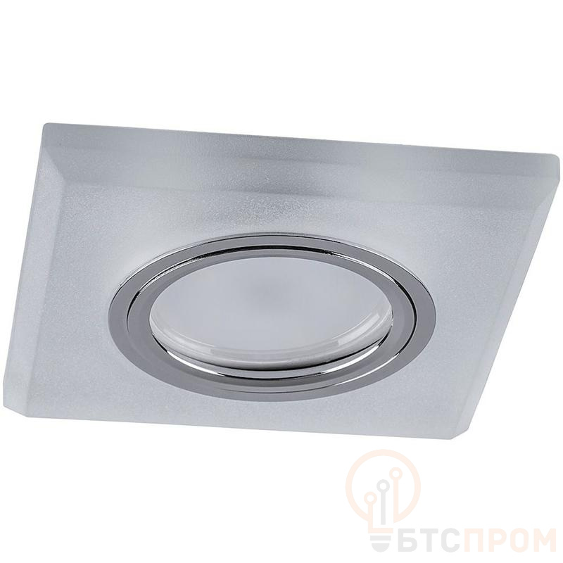 Светильник потолочный встраиваемый (ИВО) FERON CD8170, под лампу с LED подсветкой 15LED*2835 SMD 4000K, MR16 G5.3, белый матовый хром, квадрат, 90*90*20 мм, монтажный диаметр 60мм, корпус стекло, неповоротный