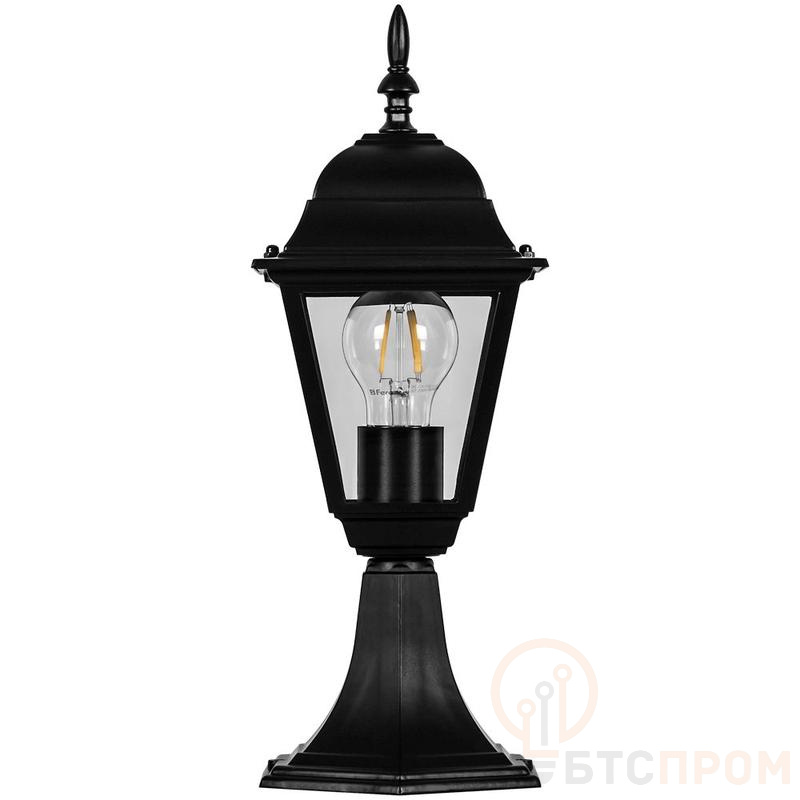 Светильник садово-парковый, серии «Классика», (НТУ) FERON 4204/PL4204 100W, E27, 230V, IP44, цвет черный, 4-х гранник, на постамент, 185*185*440мм