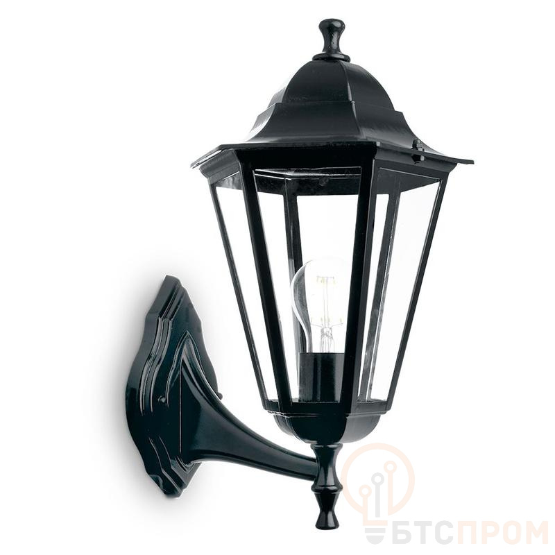 Светильник садово-парковый, серии «Классика», (НБУ) FERON 6201/PL6201 100W, E27, 230V, IP44, цвет черный, 6-и гранник, на стену вверх, 265*200*400мм