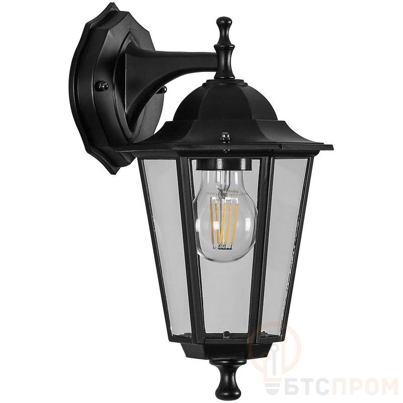 Светильник садово-парковый, серии «Классика», (НБУ) FERON 6202/PL6202 100W, E27, 230V, IP44, цвет черный, 6-и гранник, на стену вниз, 265*200*400мм