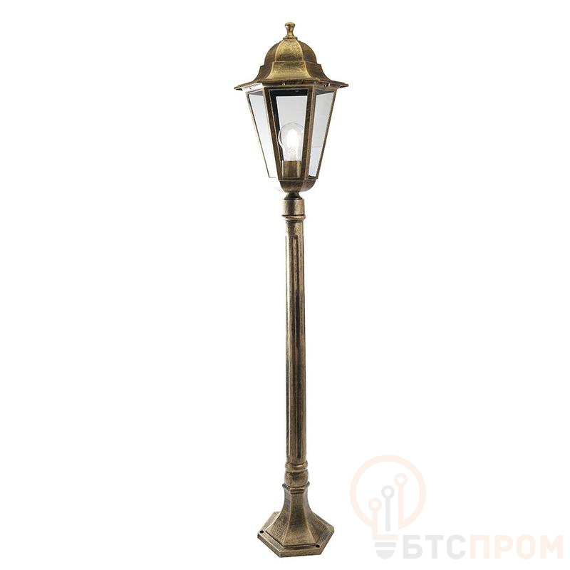 Светильник садово-парковый, серии «Классика», (НТУ) FERON 6210/PL6210 100W, E27, 230V, IP44, цвет черное золото, 6-и гранник, столб, 220*220*1140мм