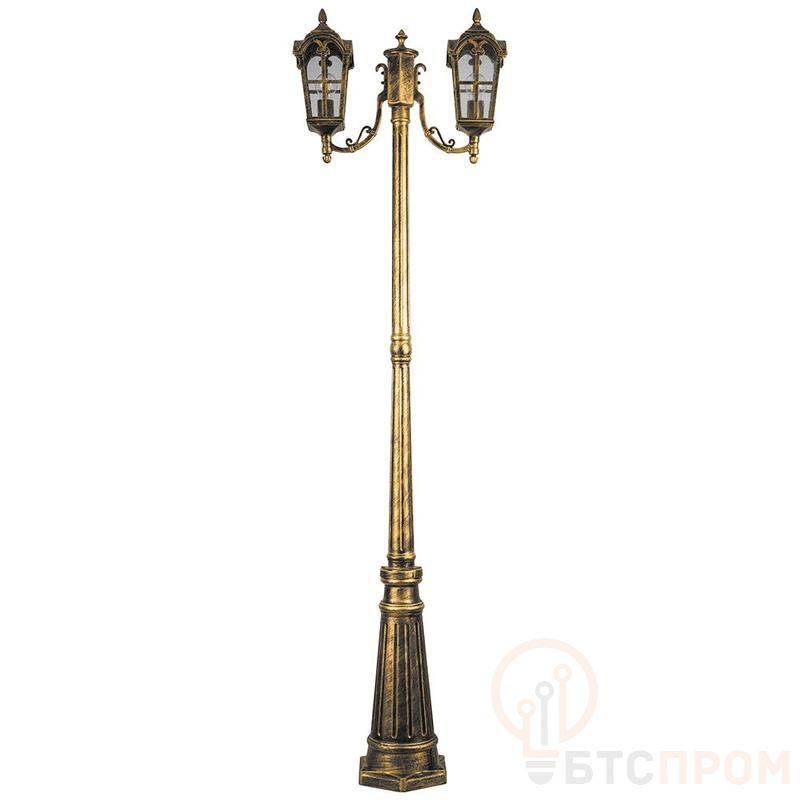 Светильник садово-парковый, серии «Кастелло», (НТУ) FERON PL109 60W, E27, 230V, IP44, цвет черное золото, 4-х гранник, столб, 560*150*2020мм