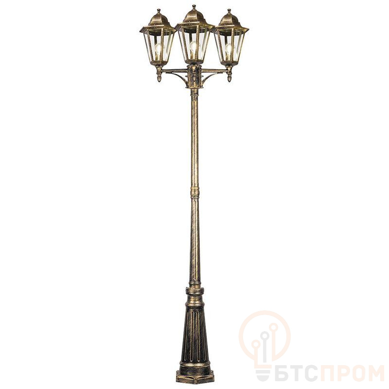 Светильник садово-парковый, серии «Классика», (НТУ) FERON 6215/PL6215 100W, E27, 230V, IP44, цвет черное золото, 6-и гранник, столб, 590*590*2130мм