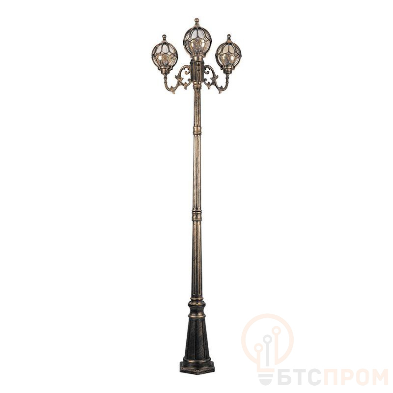 Светильник садово-парковый, серии «Версаль», (НТУ) FERON PL3709 60W, E27, 230V, IP44, цвет черное золото, шар, столб, 560*560*2200мм