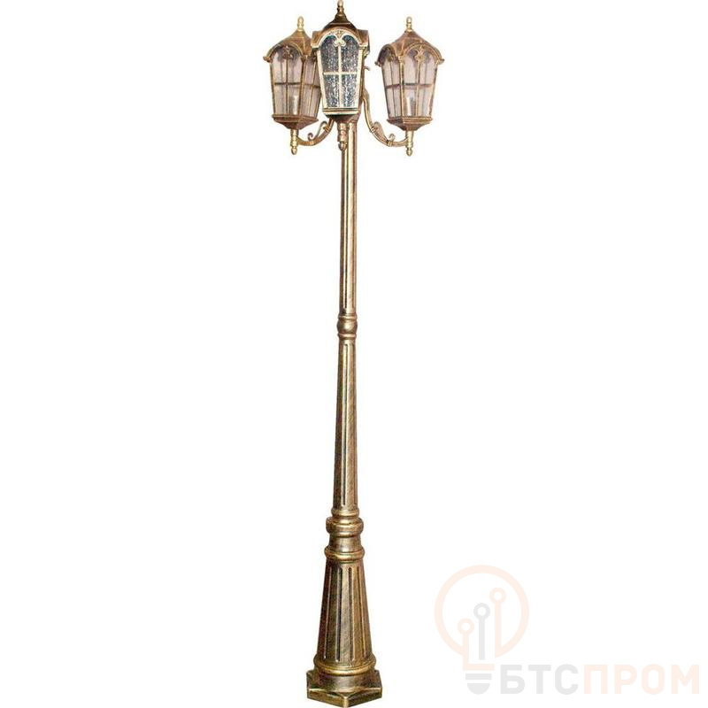 Светильник садово-парковый, серии «Кастелло», (НТУ) FERON PL110 60W, E27, 230V, IP44, цвет черное золото, 4-х гранник, столб, 560*560*2020мм