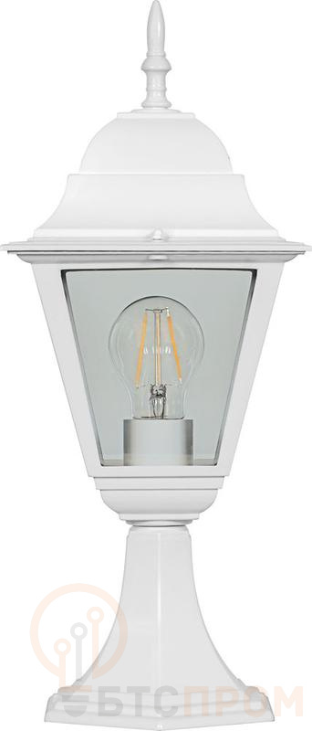 Светильник садово-парковый, серии «Классика», (НТУ) FERON 4104/PL4104 60W, E27, 230V, IP44, цвет белый, 4-х гранник, на постамент, 150*150*410мм