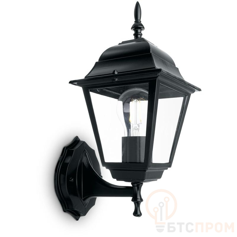 Светильник садово-парковый, серии «Классика», (НБУ) FERON 4101/PL4101 60W, E27, 230V, IP44, цвет черный, 4-х гранник, на стену вверх, 150*180*335мм
