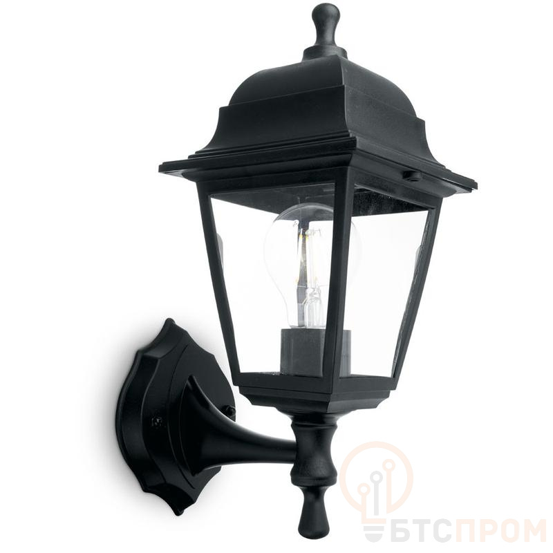 Светильник садово-парковый, серии «Классика», (НБУ) FERON НБУ 04-60-001 60W, E27, 230V, IP44, цвет черный, 4-х гранник, на стену вверх, 190*190*340мм