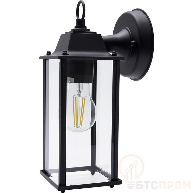 Светильник садово-парковый, серии «Санторини», (НБУ) FERON PL201 60W, E27, 230V, IP44, цвет черный, 4-х гранник, на стену вниз, 117*150*285мм