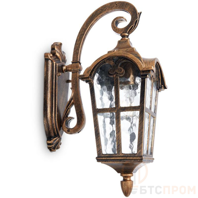 Светильник садово-парковый, серии «Кастелло», (НБУ) FERON PL103 60W, E27, 230V, IP44, цвет черное золото, 4-х гранник, на стену вниз, 150*255*480мм