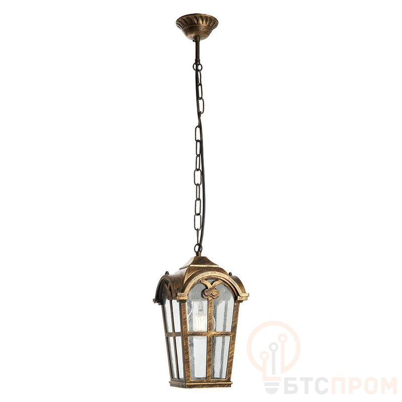Светильник садово-парковый, серии «Кастелло», (НСУ) FERON PL106 60W, E27, 230V, IP44, цвет черное золото, 4-х гранник, на цепочке, 150*150*740мм