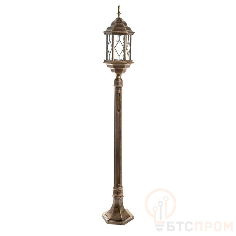 Светильник садово-парковый, серии «Сорренто», (НТУ) FERON PL126 60W, E27, 230V, IP44, цвет черное золото, 6-и гранник, столб, 160*160*1150мм