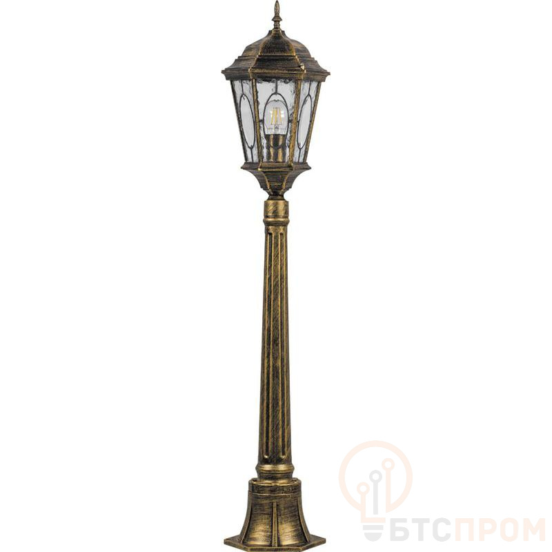 Светильник садово-парковый, серии «Рим», (НТУ) FERON PL155 60W, E27, 230V, IP44, цвет черное золото, 6-и гранник, столб, 240*240*1225мм