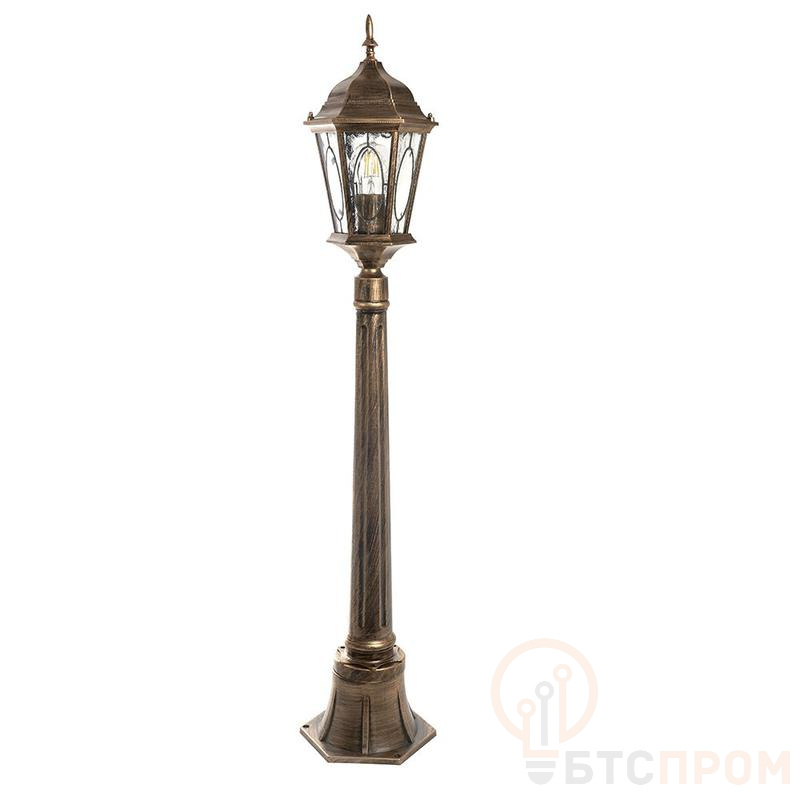 Светильник садово-парковый, серии «Рим», (НТУ) FERON PL165 60W, E27, 230V, IP44, цвет черное золото, 6-и гранник, столб, 200*200*1155мм