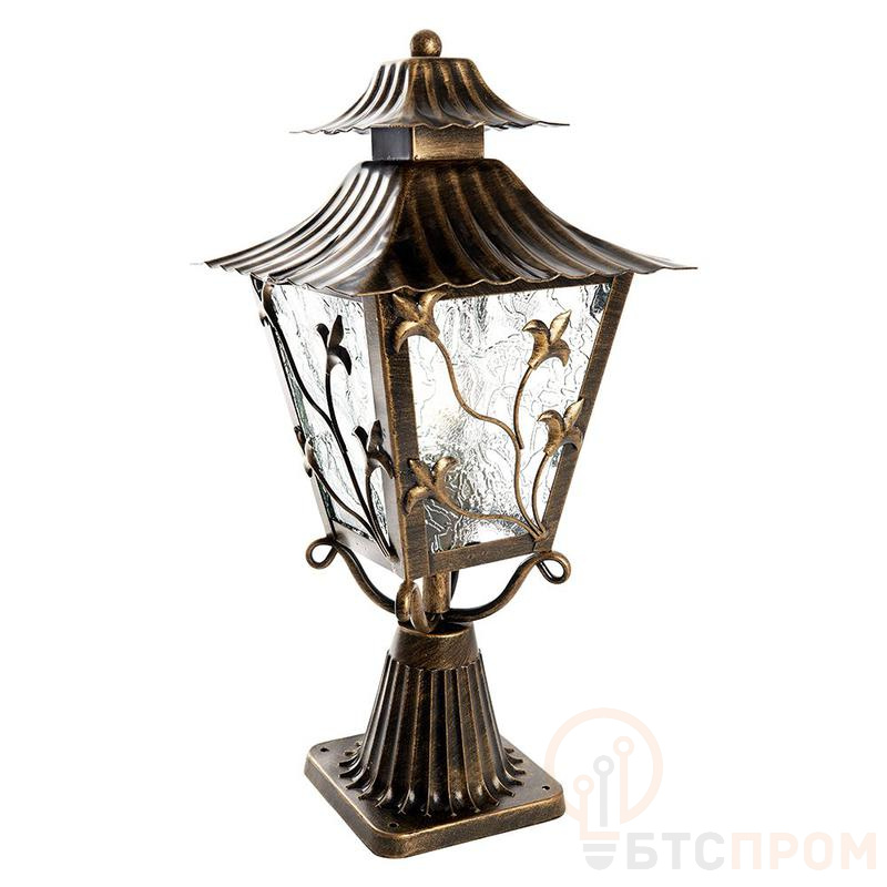 Светильник садово-парковый, серии «Палермо», (НТУ) FERON PL634 60W, E27, 230V, IP44, цвет черное золото, 4-х гранник, на постамент, 224*224*480мм