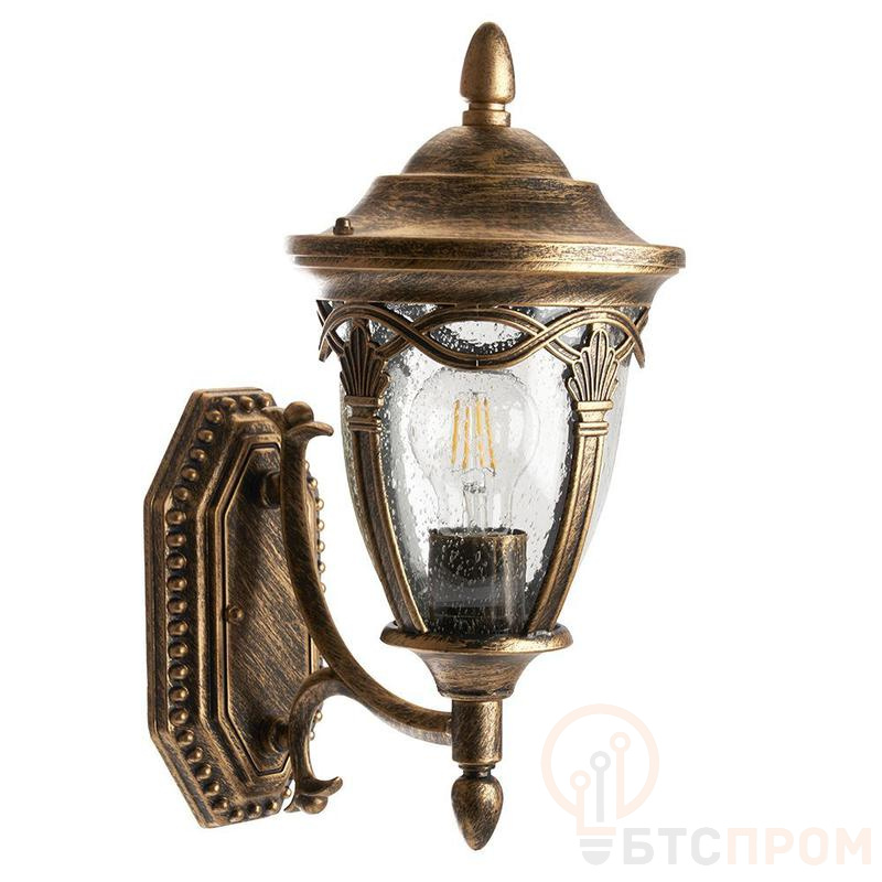 Светильник садово-парковый, серии «Будапешт», (НБУ) FERON PL682 60W, E27, 230V, IP44, цвет черное золото, на стену вверх, 250*180*370мм