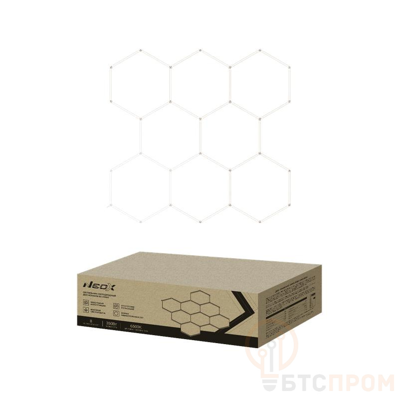 Светильник светодиодный ДБО-HEXAGON 8С-35065 350Вт 6500К 230В 2350х2442мм 8 сот 0.5м шнур с вилкой NEOX 4690612066639