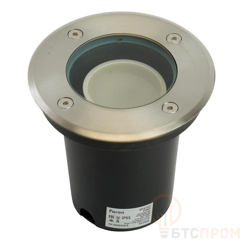 Тротуарный светильник GU10, встраиваемый (ДВУ) FERON SP3737, 7W, 4000К (натуральный белый), 230V/50Гц, IP65, угол рассеивания 90°, класс защиты 1, цвет черный, корпус алюминий, пластик, 110*110*110мм, D внутр. 70мм