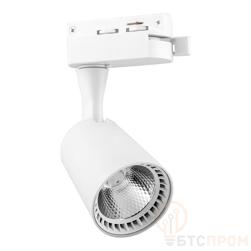 Светильник трековый на шинопровод, однофазный (ДПО) FERON AL100, 12W, 4000К (белый), 170-265V, 1080Lm, цвет белый, корпус алюминий, рассеиватель поликарбонат, вращение >360°/v90°, 70*93*120 мм