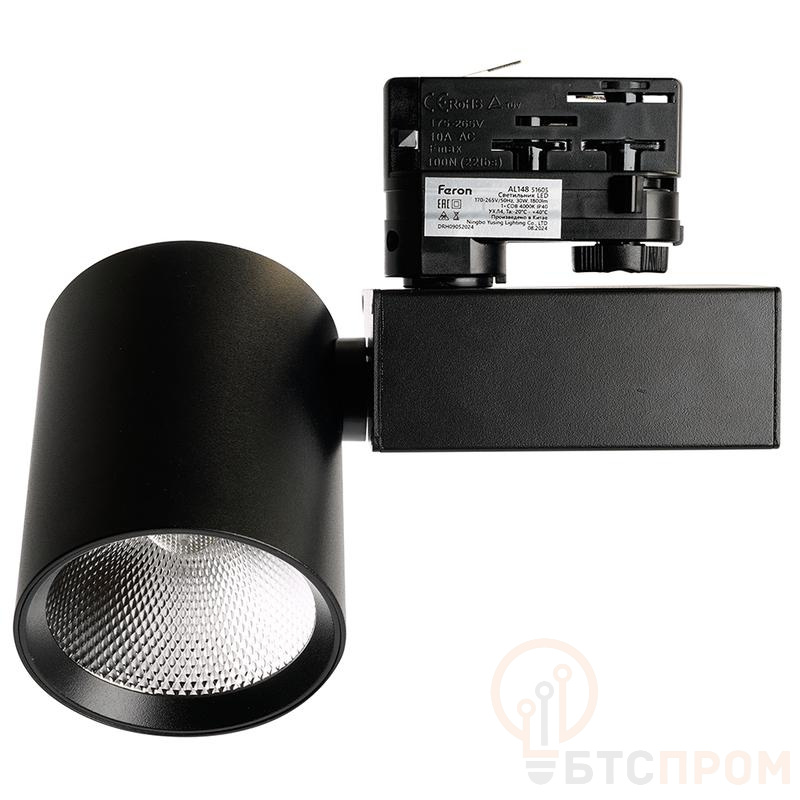 Светильник светодиодный трековый на шинопровод 30Вт 2700лм 4000К 35град. черн. 3ф AL148 со встроенным драйвером FERON 51605