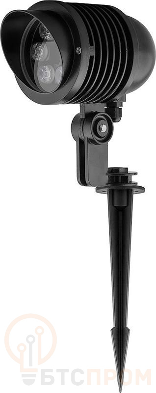 Тротуарный светильник светодиодный, на колышке (ДВУ) FERON SP2705, 6W, 6400К (холодный белый), 85-265V/50Гц, 420Lm, IP65, угол рассеивания 24°, 6LED*HPL, класс защиты 1, раб.t -40°C...+40°C, цвет черный, корпус алюминий, 105*105*300мм,