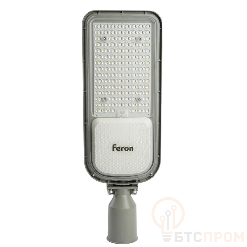 Уличный светильник консольный светодиодный, на столб (ДКУ) FERON SP3050, 100W, 4000К (белый), 85-265V/50Гц, 12000Lm, IP65, угол рассеивания 120°, 148LED*SMD2835, класс защиты 1, раб.t -60°C - +45°C, цвет серый, корпус алюминий, 514*173*74мм,