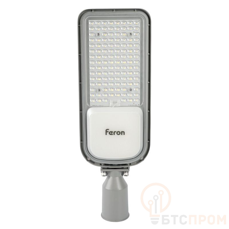 Уличный светильник консольный светодиодный, на столб (ДКУ) FERON SP3050, 100W, 5000К (дневной), 85-265V/50Гц, 12000Lm, IP65, угол рассеивания 120°, 125LED*SMD2835, класс защиты 1, раб.t -60°C - +45°C, цвет серый, корпус алюминий, 514*173*74мм,