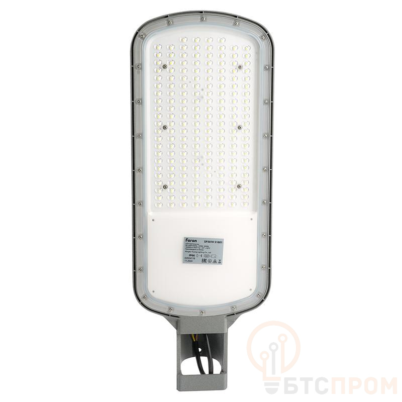 Уличный светильник консольный светодиодный, на столб (ДКУ) FERON SP3070, 120W, 5000К (дневной), 90-300V/50Гц, 19200Lm, IP66, угол рассеивания 120°, 180LED*SMD3030, класс защиты 1, раб.t -55°..+50°С, цвет серый, корпус алюминий, 572*210*75мм,