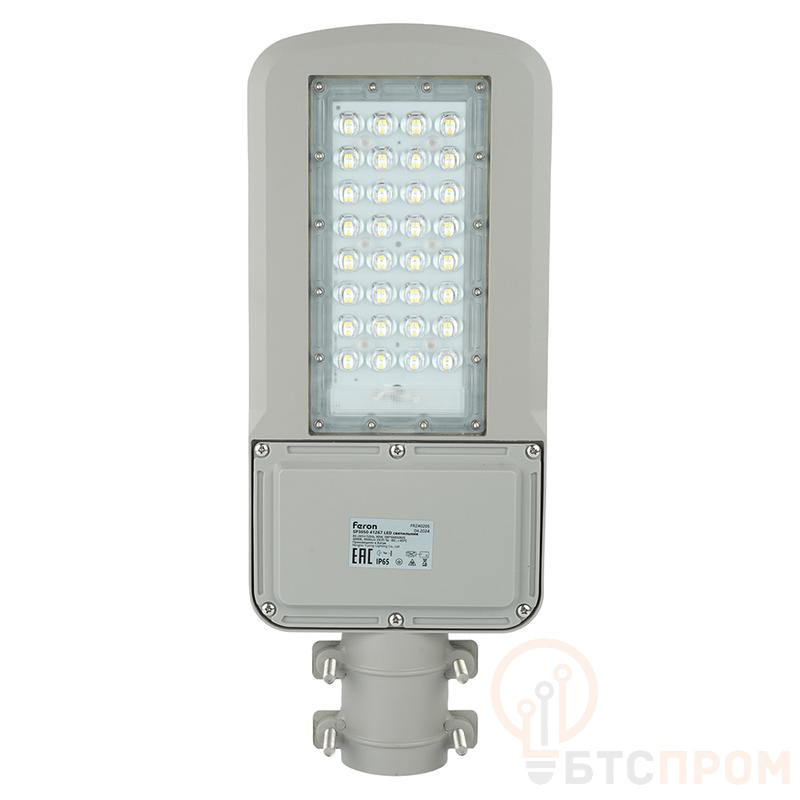 Уличный светильник консольный светодиодный, на столб (ДКУ) FERON SP3050, 80W, 4000К (белый), 85-265V/50Гц, 9600Lm, IP65, угол рассеивания 120°, 148LED*SMD2835, класс защиты 1, раб.t -60°C - +45°C, цвет серый, корпус алюминий, 530*265*65мм,
