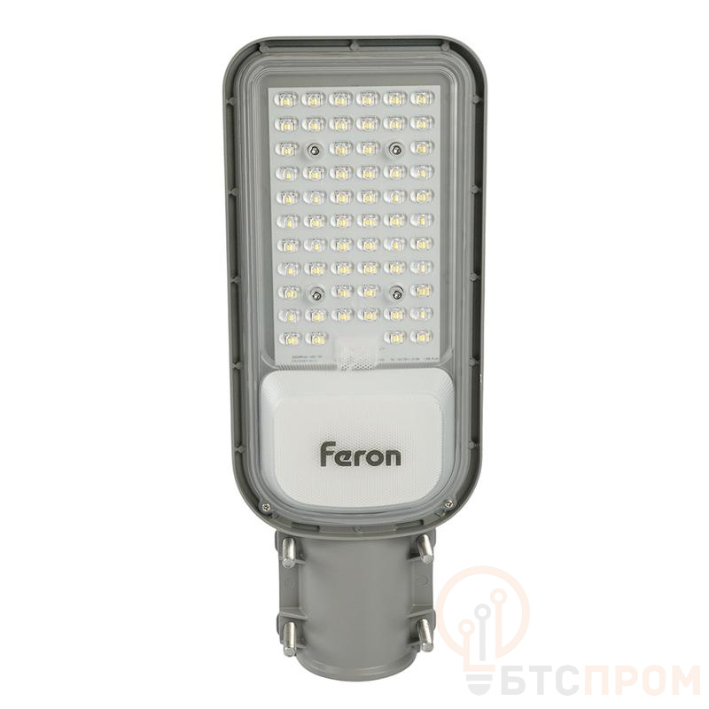 Уличный светильник консольный светодиодный, на столб (ДКУ) FERON SP3040, 80W, 5000К (дневной), 85-265V/50Гц, 9600Lm, IP65, угол рассеивания 120°, 100LED*SMD2835, класс защиты 1, раб.t -60°C - +45°C, цвет серый, корпус алюминий, 380*146*70мм,