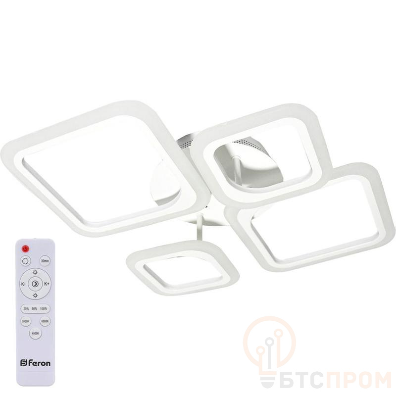 Светильник светодиодный управляемый с пультом 84Вт max. 5200лм 3000К-6500К IP20 бел. AL5940 Quadro FERON 41670