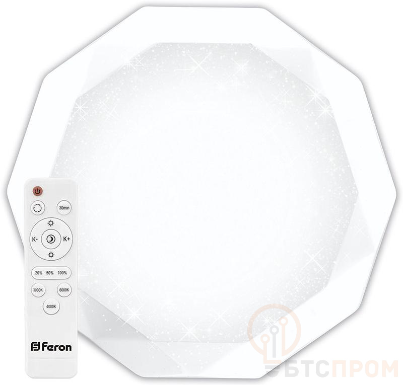 Светильник светодиодный управляемый с пультом с батарейками 2хААА 70Вт max. 5300лм 3000К-6000К IP20 AL5200 DIAмOND поставляются в комплекте с пультом и батарейками для него (2 шт) FERON 41471