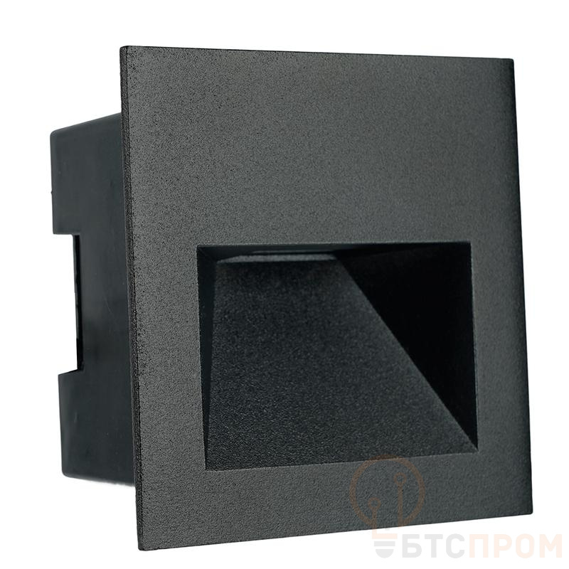 Светильник встраиваемый светодиодный, для лестничной подсветки (ДВУ) FERON LN013-1, 3W 4000К (белый натуральный), 110-265V, 80Lm, IP65, цвет черный, корпус алюминий, пластик, рассеиватель стекло, 86*86*63 мм, монтажн.отв. 68*68 мм.