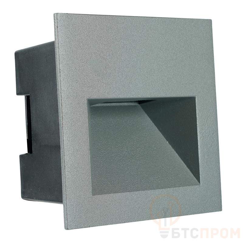 Светильник встраиваемый светодиодный, для лестничной подсветки (ДВУ) FERON LN013-1, 3W 4000К (белый натуральный), 110-265V, 80Lm, IP65, цвет серый, корпус алюминий, пластик, рассеиватель стекло, 86*86*63 мм, монтажн.отв. 68*68 мм.