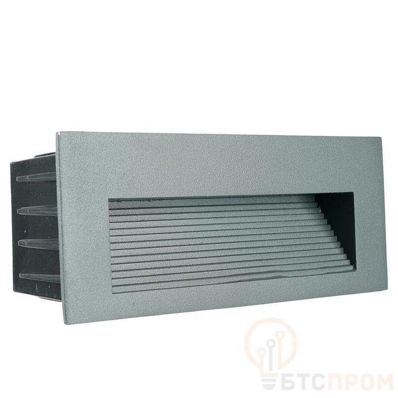 Светильник встраиваемый светодиодный, для лестничной подсветки (ДВУ) FERON LN012-1, 5W 4000К (белый натуральный), 110-265V, 80Lm, IP65, угол рассеивания 120°, цвет серый, корпус алюминий, пластик, рассеиватель стекло, 170*55*70 мм, монтажн.отв. 160*60 мм.