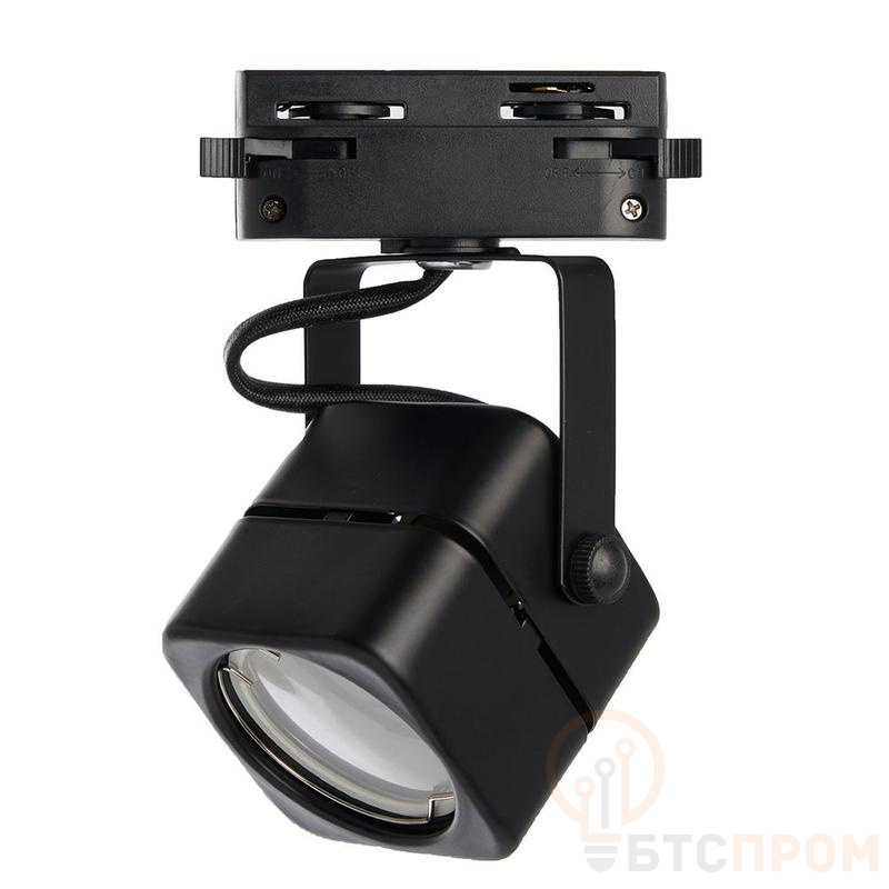 Светильники трековые на шинопровод GU10, однофазный (ИВО) FERON AL190, 50W, 230V, цвет черный, корпус сталь, вращение >350°/v90°, 60*60*140 мм