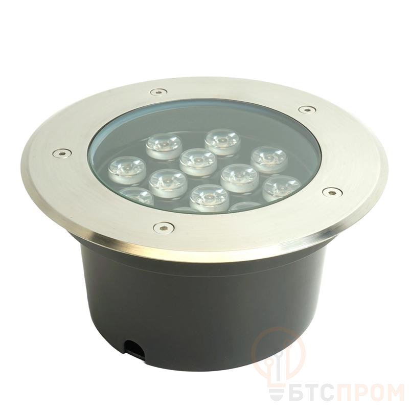 Тротуарный светильник светодиодный, встраиваемый (ДВУ) FERON SP4114, 12W, 2700К (теплый белый), 230V/50Гц, 950Lm, IP67, угол рассеивания 24°, 12LED*HPL, класс защиты 1, цвет металлик, корпус алюминий, сталь, 180*180*90мм, D внутр. 130мм