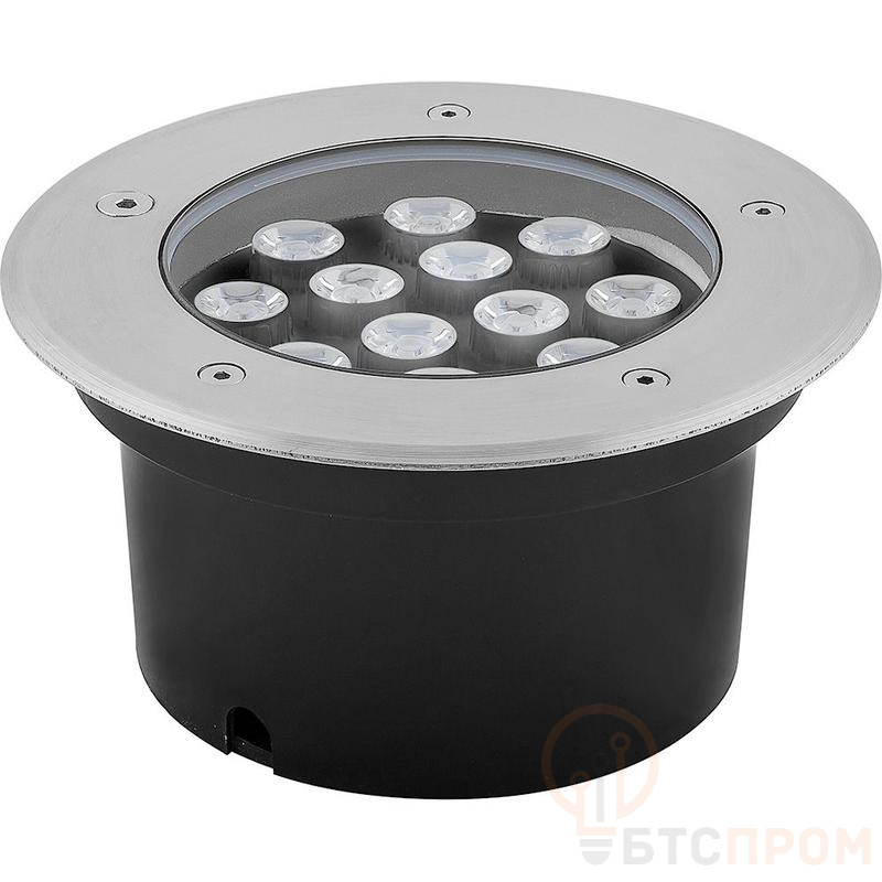 Тротуарный светильник светодиодный, встраиваемый (ДВУ) FERON SP4114, 12W, (зеленый), 230V/50Гц, IP67, угол рассеивания 24°, 12LED*HPL, класс защиты 1, цвет металлик, корпус алюминий, сталь, 180*180*85мм, D внутр. 130мм