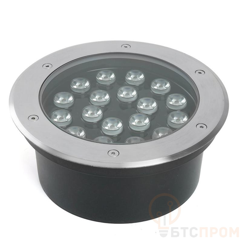 Тротуарный светильник светодиодный, встраиваемый (ДВУ) FERON SP2804, 20W, 4000К (нейтральный белый), AC/DC12V/50Гц, 1600Lm, IP67, угол рассеивания 15°, 18LED*SMD3030, класс защиты 3, цвет металлик, корпус алюминий, сталь, 200*200*90мм, D внутр. 170мм