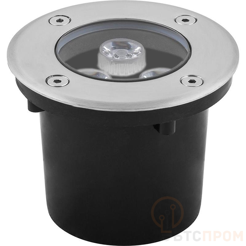 Тротуарный светильник светодиодный, встраиваемый (ДВУ) FERON SP4111, 3W, (RGB), 230V/50Гц, IP67, угол рассеивания 24°, 3LED*HPL, класс защиты 1, цвет металлик, корпус алюминий, сталь, 100*100*80мм, D внутр. 70мм