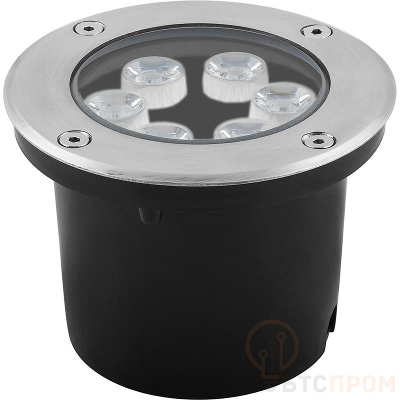 Тротуарный светильник светодиодный, встраиваемый (ДВУ) FERON SP4112, 6W, 6400К (холодный белый), 230V/50Гц, 480Lm, IP67, угол рассеивания 24°, 6LED*HPL, класс защиты 1, цвет металлик, корпус алюминий, сталь, 120*120*90мм, D внутр. 90мм