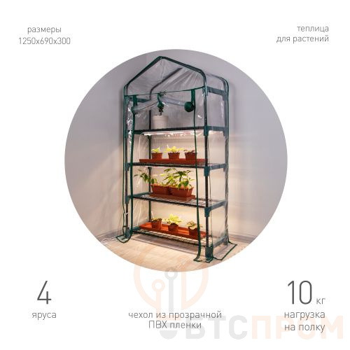 Теплица GA-House-4x-frame от GREEN APPLE – это современная четырехъярусная конструкция для эффективного выращивания рассады, зелени и цветов в условиях ограниченного пространства. Каркас выполнен из прочной стальной трубы с порошковым покрытием, обеспечивающим устойчивость к коррозии. Габаритные размеры 1250х690х300 мм оптимальны для размещения на балконе, лоджии, террасе или в зимнем саду.