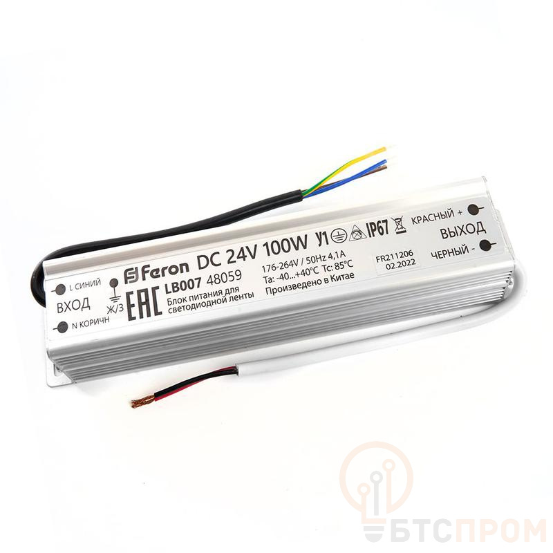 Трансформатор электронный для светодиодной ленты 100W 24V IP67 (драйвер), LB007 FERON