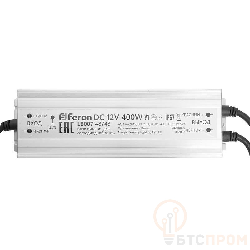 LB007 Трансформатор электронный для светодиодной ленты 400W 12V 245*77*41мм IP67(драйвер)