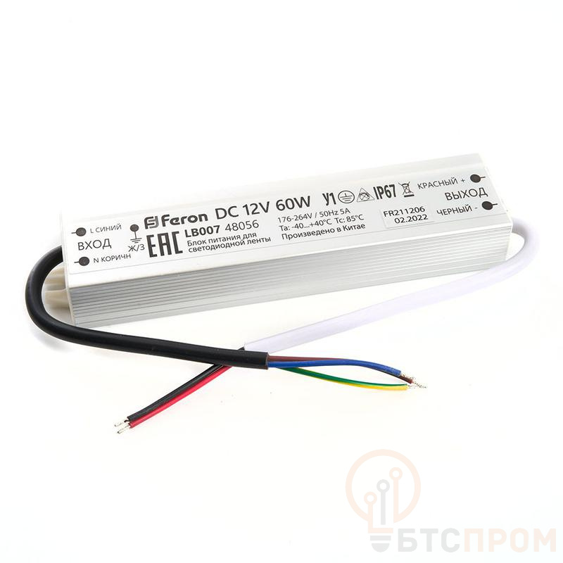 Трансформатор электронный для светодиодной ленты 60W 12V IP67 (драйвер), LB007 FERON