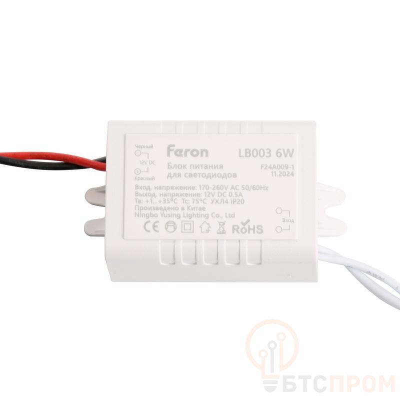Трансформатор электронный для светодиодной ленты 6W 12V (драйвер), LB003 FERON