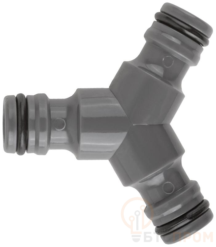 Тройной переходник КУРС предназначен для быстрого и надежного соединения трех участков шланга, имеющих на концах быстросъемные соединители. Переходник изготовлен из прочного пластика, устойчивого к воздействию воды и ультрафиолетового излучения. Переходник КУРС прост в использовании и не требует специальных инструментов для установки.