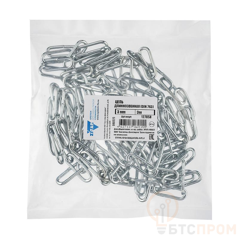 Область применения: применяется в строительстве и быту для крепления неответственных конструкций (подвески, растяжки и пр.). Не предназначена для грузоподъемных работ и выдерживания ударных нагрузок. Материал: углеродистая сталь с антикоррозионным цинковым покрытием. Особенности: цепь имеет малый коэффициент растяжения и большую степень свободы, ограниченную одним звеном. За счет большой длины звена можно легко отрегулировать цепь по длине и сделать петлю методом звено в звено. Размер цепи соответствует диаметру поперечного сечения проволоки, применяемой при вязке.